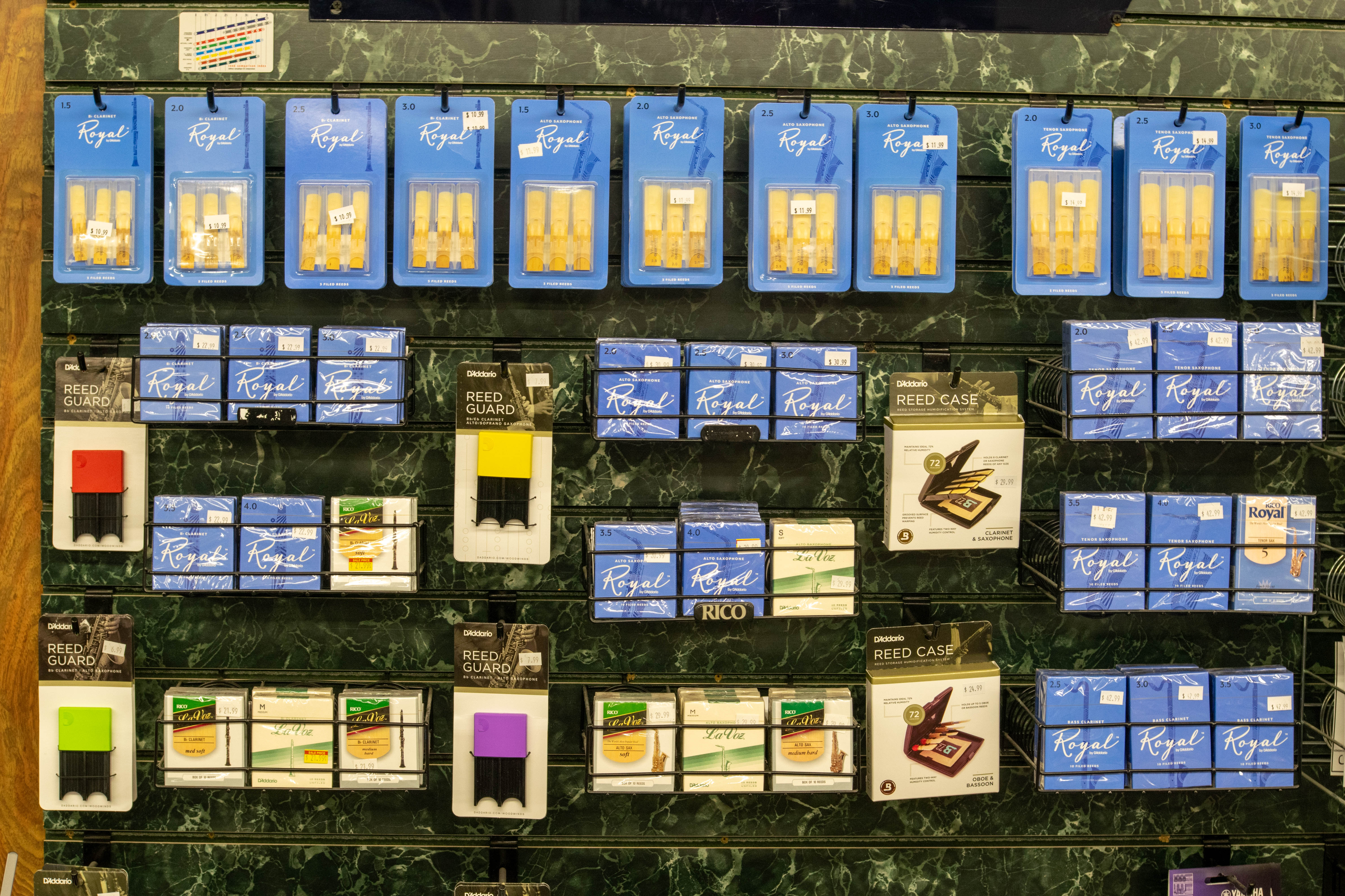 We support our local band students by stocking the brands recommended by your band instructors. Royal and Vandoren reeds, Al Cass oils, Yamaha and Selmer instruments and accessories, Vic Firth and Innovative Percussion sticks – we do our best to have it all in stock for your convenience! We strive to stock all the brands recommended by your band instructors: Royal and Vandoren reeds, Al Cass oils, Yamaha and Selmer instruments and accessories, Vic Firth and Innovative Percussion sticks. Don’t see it in stock? We can order most items in a timely manner.