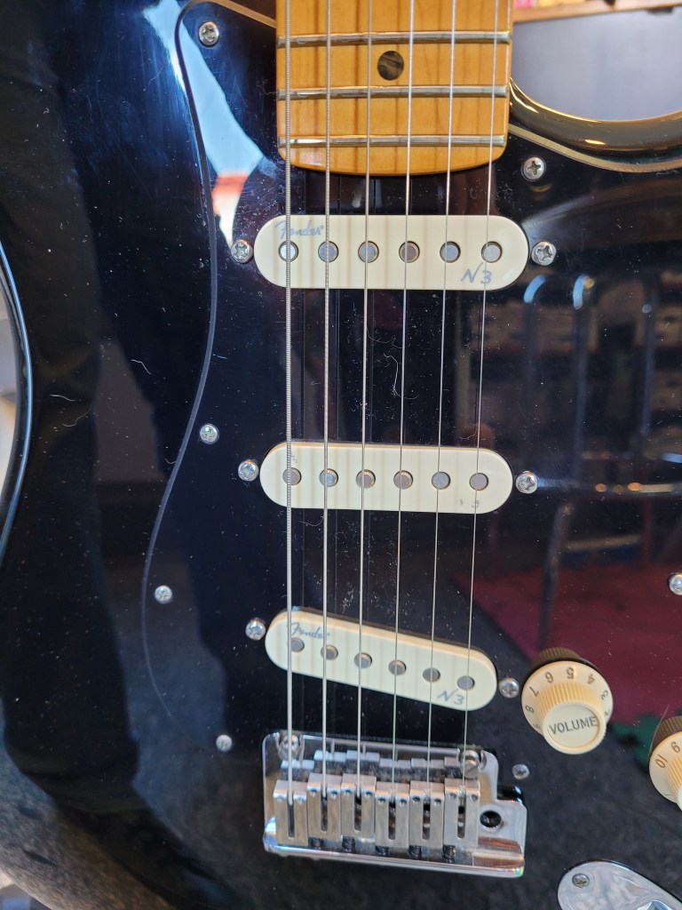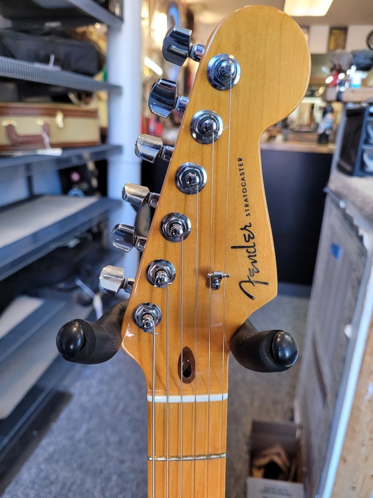 What a beauty! This gorgeous American-made Strat has the original pick guard, though the current owner switched it for a single-ply black. It has a great look, and an even better sound! Complete with an official Fender hard shell case and accessories.